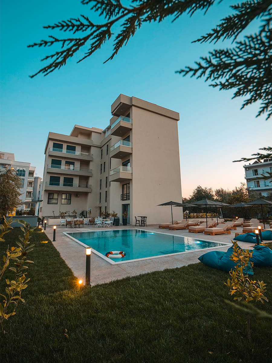Potam, Himare, South Albania – A 4-star luxury beachfront hotel on the Ionian coast featuring elegant accommodation, private beach access, a seasonal pool and exceptional hospitality.